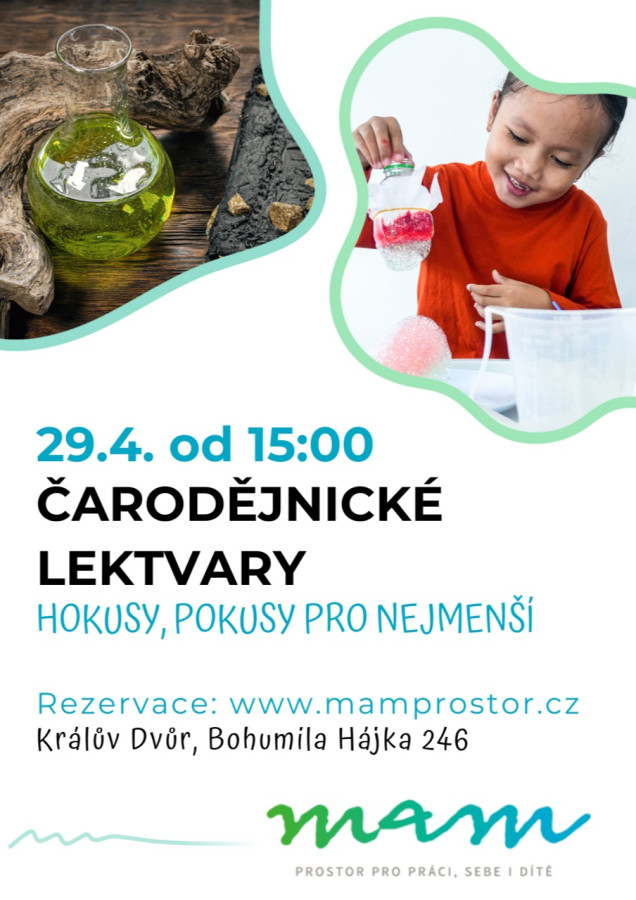 Vstup zdarma, prosíme však o potvrzení účasti na https://www.mamprostor.cz/carodejne-lektvary, aby se na všechny děti dostalo.