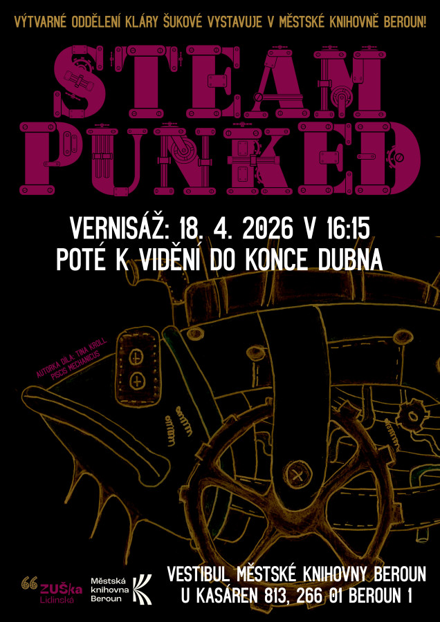 Výstava žáků ze ZUŠky Lidinské představuje vizi mechanického světa inspirovanou vědeckofantastickými romány Julese Verna a nezaměnitelnou estetikou filmů Karla Zemana. Prostřednictvím kreseb a maleb autoři propojují syrovost mechanického světa s poetikou Zemanových filmů.