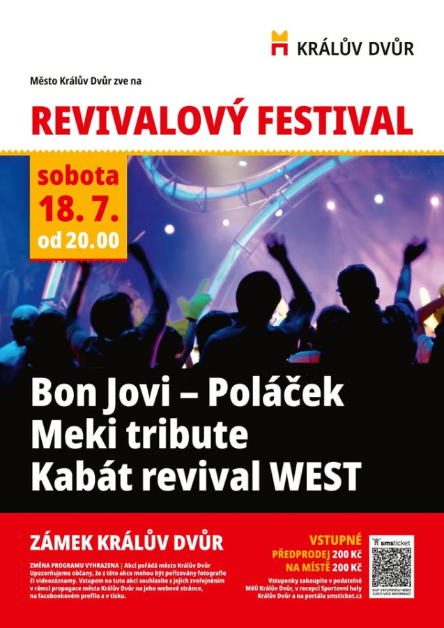 Letní scéna zámku v Králově Dvoře bude v sobotu 19. července hostit další ročník akce Revivalový festival. Letos zde uslyšíte kapely:
