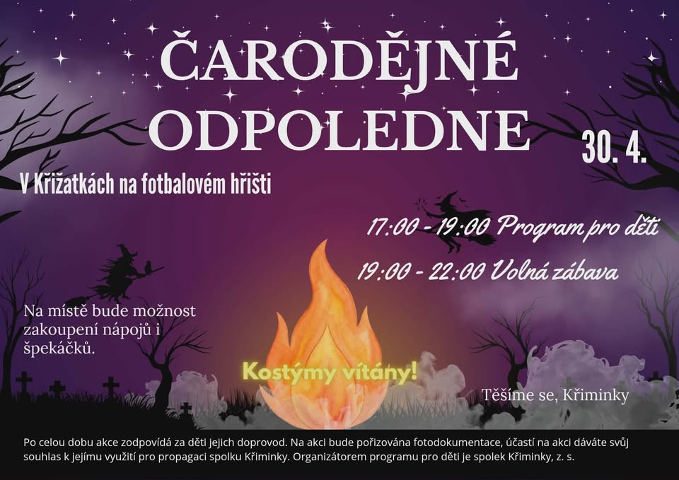 Všechny srdečně zveme na pálení čarodějnic v Křižatkách