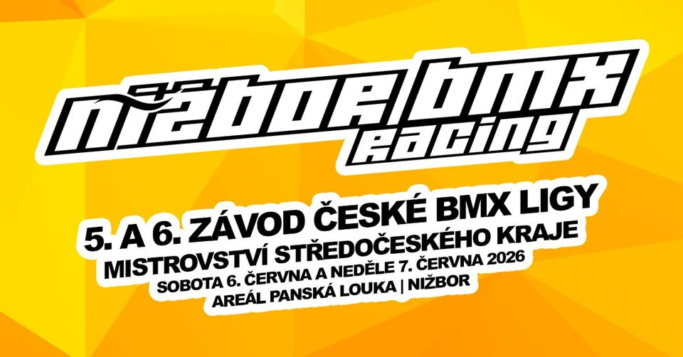 Závody ze seriálu České BMX ligy 2026 na BMX dráze v Nižboru, sportovní areál Panská louka. Sobotní závod bude rovněž hodnocen jako Mistrovství Středočeského kraje 2026.